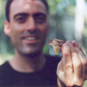 | | (Terry Ord con uno de los lagartos.) (Foto: UC Davis) | |