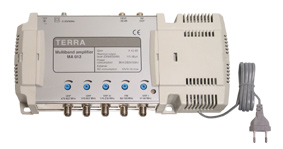 Un ejemplo de modelo de equipo monocanal Centrales amplificadoras micro procesadas. Se trata de los últimos modelos de centrales amplificadoras. Su coste es relativamente bajo si lo comparamos con el de un equipo de monocanales y disponen de una serie de ventajas sobre estos. Este tipo de centrales son programables, es decir, que a la hora de realizar una ampliación, únicamente deberemos de llamar al instalador, y este nos programara el nuevo canal, sin tener que añadir ningún material nuevo. Evidentemente el coste es mucho menor que el tener que colocar un amplificador nuevo cada vez que empiece a emitir un nuevo operador de televisión. Además la mayoría de las que hay en el mercado son capaces de trabajar con canales adyacentes, Otra ventaja muy importante es que suelen llevar integradas dentro de la misma central amplificadores para la banda de DAB (radio digital) y amplificador de FI (satélite digital), con lo que con un equipo muy compacto se pueden ofrecer una amplia oferta de servicios. De hecho, en la mayoría de nuevas construcciones se esta implementando este tipo de equipos. La única pega, y es que nada es perfecto, es que el nivel de señal que nos ofrecen a su salida es mas bajo que el de un equipo de monocanales, pero esto seria perfectamente solucionable, en aquellas instalaciones que requieran por su tamaño un nivel de salida elevado, colocando un amplificador Toda banda a la salida de la central micro procesada, o en un punto intermedio de la instalación.
