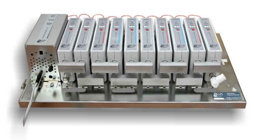 Ejemplo de amplificador todabanda Amplificador Toda banda con filtro activo. Este tipo de amplificador es el paso intermedio entre el toda banda y los amplificadores monocanales. A pesar de ello, no llega ni de lejos a la eficacia de estos últimos en calidad de amplificación, y no han tenido mucho éxito a la hora de su implantación. Se trata de un amplificador toda banda, al que se le han añadido a la entrada una serie de filtros activos que seleccionaremos dependiendo de los canales que queramos amplificar. En el proceso de adecuación de instalaciones a la TDT son equipos a extinguir, ya que por lo general están limitados en cuanto al número de canales que se pueden instalar, y ya que durante el proceso de implantación de la TDT tendrán que coexistir los canales analógicos con los digitales necesitamos poder tener capacidad para tener numerosos canales instalados. Por otra parte, este tipo de amplificadores se enfrentan al hecho de que cada vez es mas frecuente trabajar con canales adyacentes, lo cual les obligaría a tener filtros mejores a la entrada, con lo que el precio de estos se dispararía, equiparándolos con los amplificadores monocanales, y lo cierto es que precio por precio siempre es preferible estos últimos. Amplificadores monocanales. Este tipo de amplificador es el mas extendido en el mercado español, y es que hasta hace poco ofrecía la mejor relación calidad-precio-prestaciones. Un equipo de estas características se compone generalmente de una fuente de alimentación, un amplificador por cada canal que queramos amplificar, mas los elementos de sujeción. La principal ventaja es que podemos ajustar las señales independientemente para cada canal que queremos amplificar, (el problema que tenían los toda bandas) con lo cual en zonas donde las señales que se reciben de antena no están bien equilibradas podíamos solucionarlo. Por otra parte, si hasta hace poco la mayoría de fabricantes hacían dos amplificadores del mismo modelo, uno adyacente y otro no, ahora ya solo los fabrican adyacentes, y generalmente manteniendo los precios, con lo que la relación antes indicada de calidad-precio se ha visto incrementada. Aquellas comunidades que dispongan de este tipo de amplificadores, y quieran adaptarse a la TDT generalmente solo tendrán que colocar los amplificadores que correspondan. El tema de precios siempre es una cosa difícil de decir, pero el promedio es de unos 90-100 Euros por cada amplificador, dependiendo de la marca y del instalador. En contra de este tipo de equipos hay que decir que las nuevas centrales amplificadoras micro procesadas ofrecen una serie de ventajas que los monacales no pueden darnos, a un precio mucho mas ventajoso, como veremos mas adelante. A pesar de esto, mi opinión es que si se dispone de un equipo monocanal, en buen estado y de un fabricante reconocido, realicemos la adaptación de este.