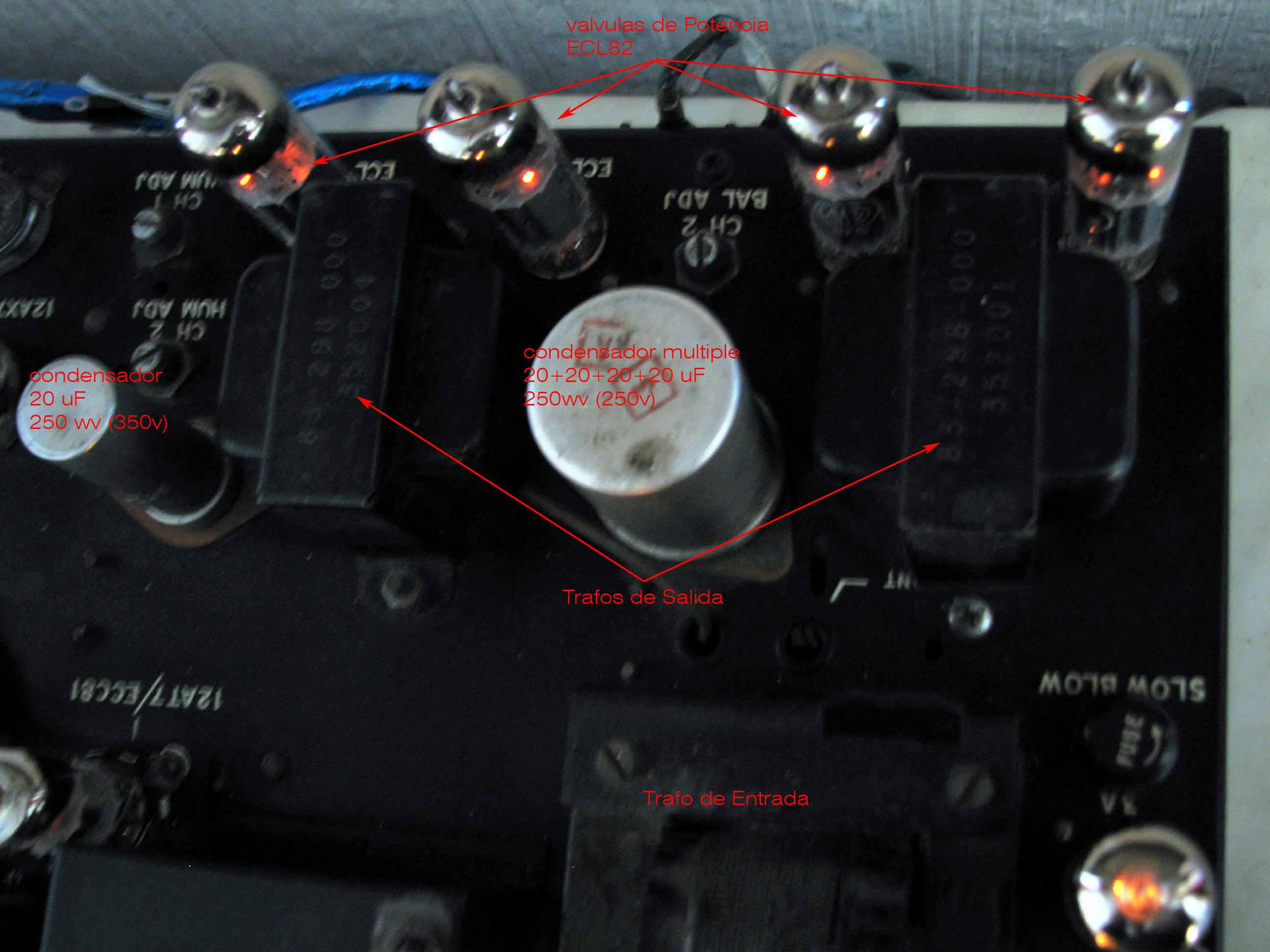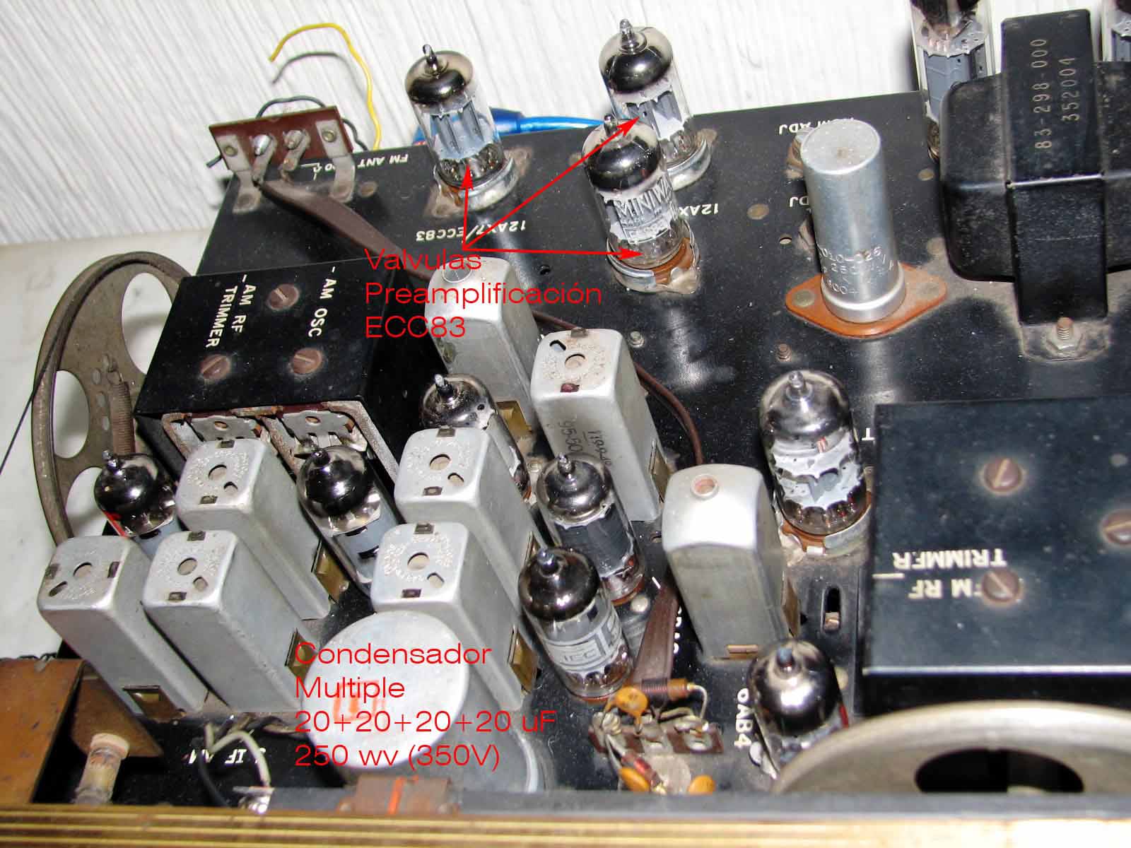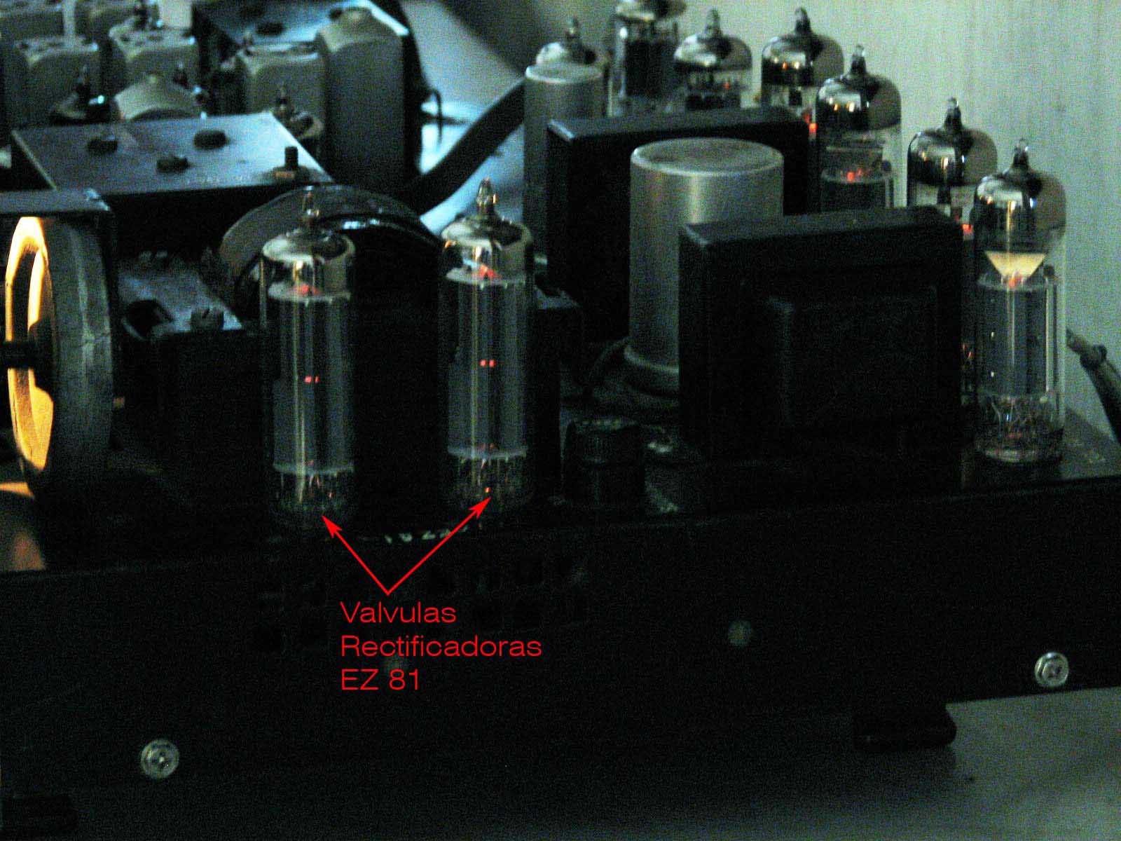 Aberigue que este fenómeno podía tener dos causas; o estaban fallando las válvulas inversoras (EZ-81) o eran los condensadores de filtro, pues se le había evaporado el electrólito. Cambiel las valvulas EZ-81 y el HUM continuo igual, así que le meti mano a los condensadores, pero el HUM CONTINUA.