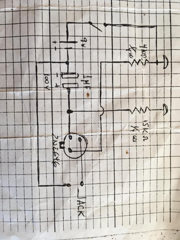 Me han pasado un esquema eléctrico de un circuito que mide la ansiedad de una persona a través de la sudoración (conductividad, supongo) de dos de sus dedos.
