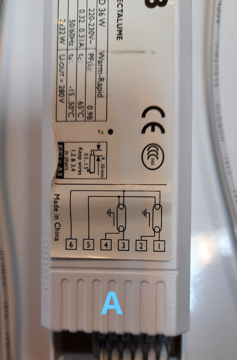 Tengo una duda sobre unos balastros electrónicos para luminarias de fluorescentes. He tenido que cambiar a unos nuevos y el modelo original ya no se fabrica, el equivalente que me han mandado tiene un diagrama de conexión diferente. No tengo mucha idea de estas cosas, si me pudierais decir donde tengo que conectar los cables en el balastro nuevo (B) respecto al antiguo (A) os lo agradezco.