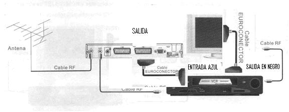 tengo enganchado todo medianto euroconectores. la antena va a la tdt, un euroconector va de la tdt al video y otro del video a la TV.