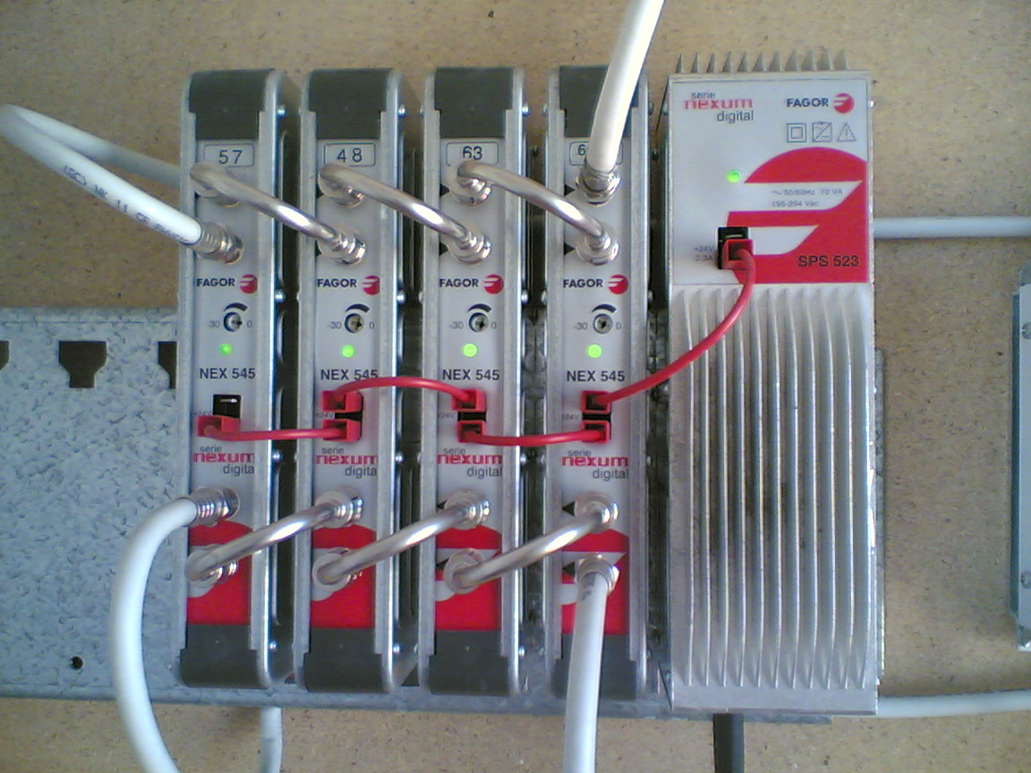 Ahora para los digitales tenemos cuatro módulos múltiples marca FAGOR modelo NEX 545 para los canales 48, 57, 63, y uno múltiple del 66-69.bueno pues yo tengo entendido que cada uno en digital recibe varios canales de TV y otros cuantos de radios.