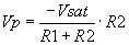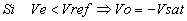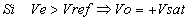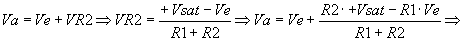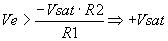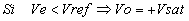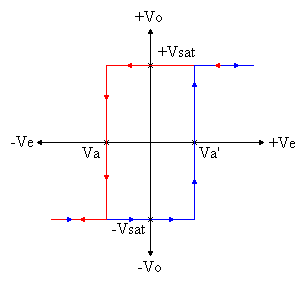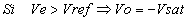 - Circuitos limitadores de la tensión de salida. - Comparador inversor con histéresis o comparador regenerativo. En este comparador la señal de entrada Ve puede oscilar entre una gama de valores antes que la salida cambie de estado. En principio si Ve < 0, la salida Vo satura a positivo. Si queremos cambiar de estado la salida deberemos aplicar una Ve mayor que VR2. Esta tensión deberá ser: Una vez superada Vp, el operacional saturara a negativo por lo cual para volver a cambiar su estado deberemos aplicar una tensión más negativa que la VR2. Es decir: El resultado es que mientras la señal de entrada esté entre los valores de Vv y Vp la salida no cambiará de estado. - Comparador no inversor con histéresis. Supongamos: Vsal = + Vsat |